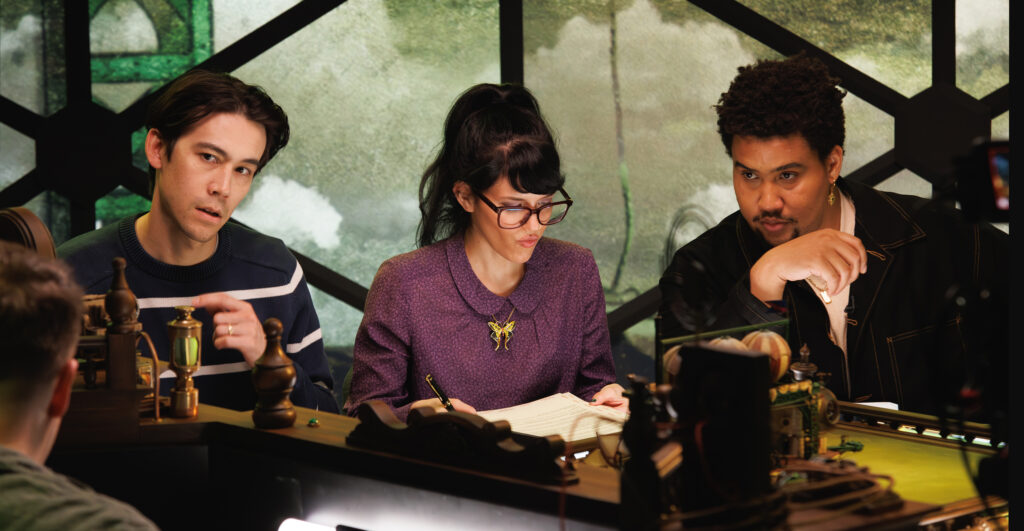 Zac Oyama, Emily Axford, and Lou Wilson playing in Dimension 20’s Cloudward Ho. Photo by Kate Elliot.